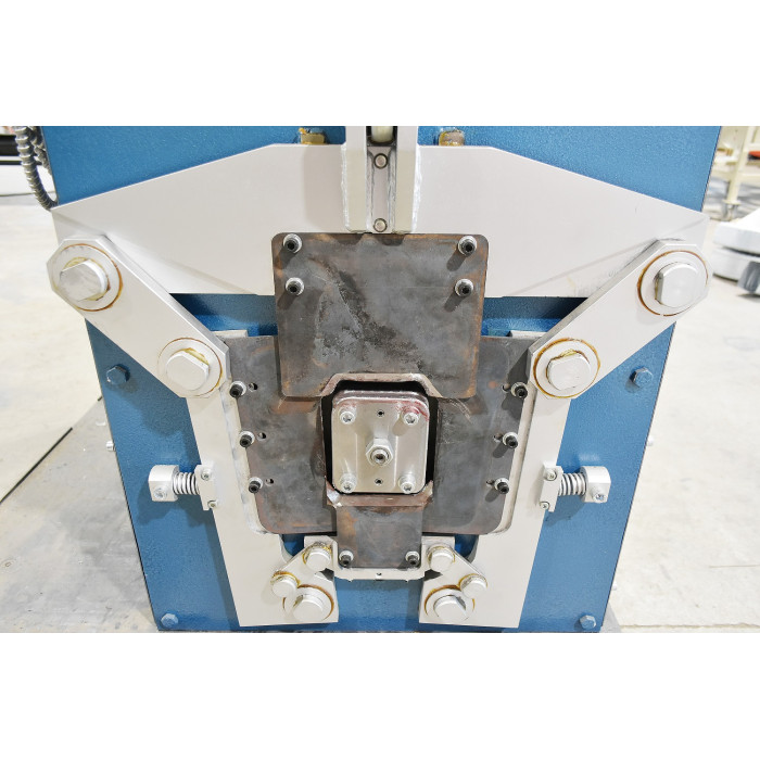 Máquina industrial automática diseñada para producir codos cuadrados y redondos para bajantes y conductos HVAC, con uniones soldadas o ribeteadas.