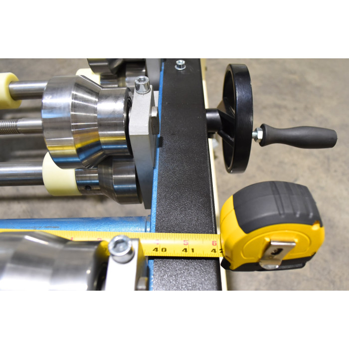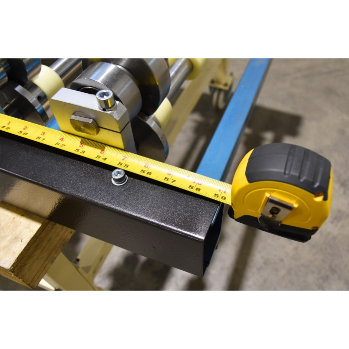 Está diseñada para producir paneles de techo rectos y lisos con costura mecánica doble de 1". El ancho de los paneles es totalmente ajustable, desde 6" hasta 25" para los paneles o de 9" a 28" para rollos de metal. El modelo estándar está equipado con un motor AC monofásico de 1,5 hp.