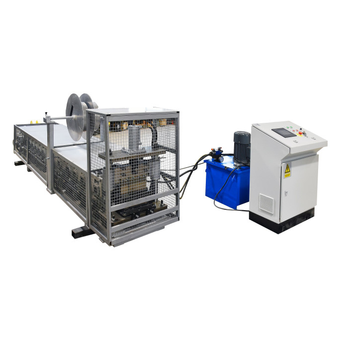 PLC automated hydraulic cutting system then cuts the formed panels to the required length.