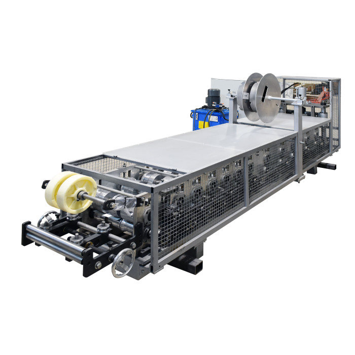 the flat metal strip through a series of tooling forming rollers that